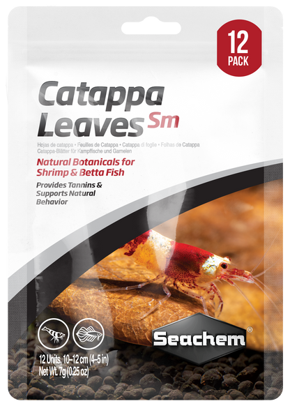 Catappa leaves coming from Indian Almond Trees(Terminalia catappa) help to replicate natural environments for Bettas, shrimp and other aquarium inhabitants. When added to an aquarium, they release tannins and other organic compounds which aid in maintaining lower pH and gently tinting water. These conditions mimic habitats with acidic water and abundant leaf litter. As catappa leaves decay, beneficial micro-organisms grow on the leaf surface, creating a natural source of food for shrimp, snails, and newly-hatched fish.