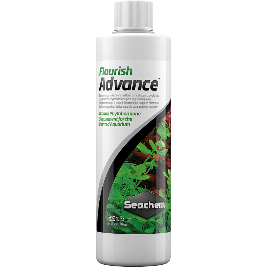 Flourish Advance™ is an all-natural, biologic growth enhancer for aquatic plants. Its advanced formula contains phytohormones, minerals, and nutrients that dramatically stimulate the growth of both roots and shoots in aquatic plants. Phytohormones are a group of naturally occurring compounds that play crucial roles in regulating plant growth in a wide range of developmental processes, including cell division, formation and activity of shoot meristems, induction of photosynthesis gene expression, leaf senescence, nutrient mobilization, seed germination, root growth and stress response. Used regularly, it also enhances mineral absorption and improves disease resistance. It is non-toxic and completely safe for all plant varieties as well as for fish and aquatic organisms.